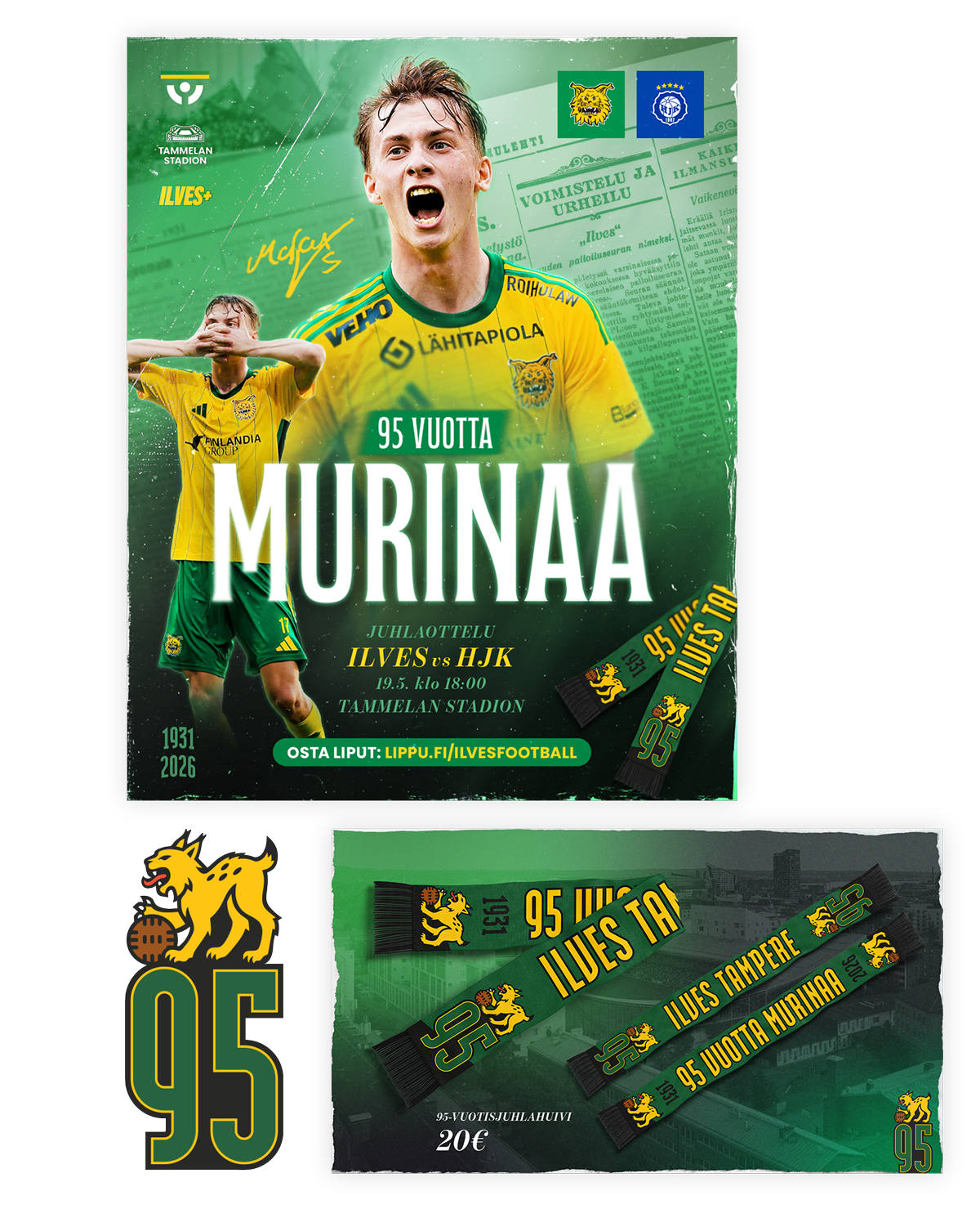 Ilves Football was seeking an experienced graphic designer to continue developing their established brand identity. I advanced to the later stages of the recruitment process. These are selected promotional visuals designed for Ilves’ upcoming 95th anniversary match, featuring the Ilves 95 anniversary logo and a fan scarf concept.