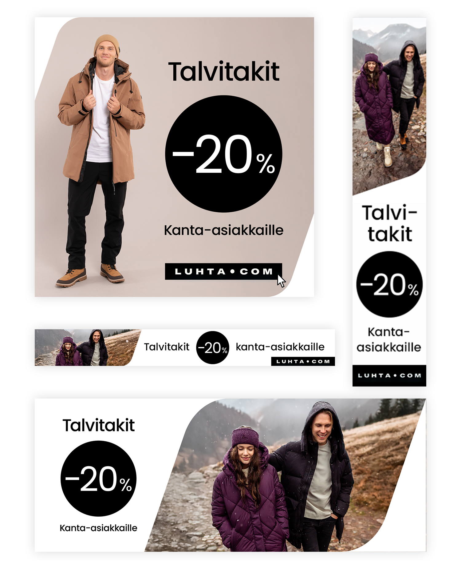Luhta Sportswear sought a graphic designer for a fixed-term role focused on Google and social media marketing campaigns. These samples showcase designs created using existing imagery as part of the recruitment process.