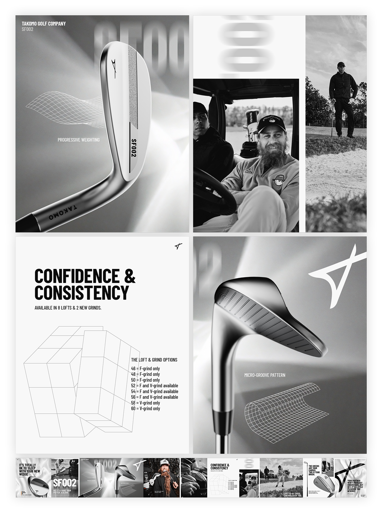 Due to confidentiality, the original assignment brief cannot be shared. However, the following visuals represent design work created for Takomo Golf as part of a recruitment process.