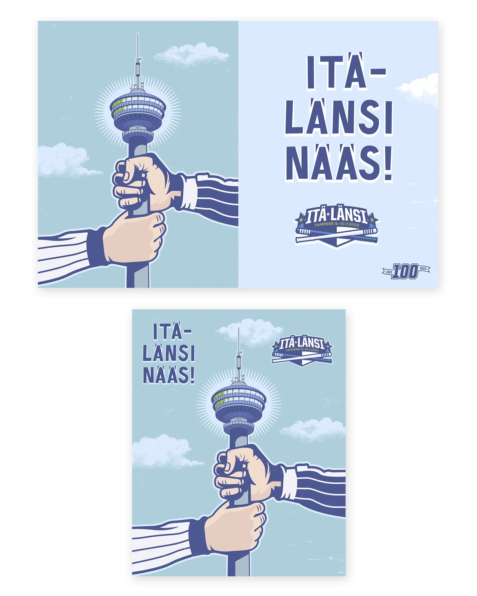 For several years, I did Itä-Länsi advertising images and print graphics for Suomen Pesäpalloliitto featuring group of Photoshopped star players, but in the 100th anniversary year of Pesäpallo, we created the look in a completely different style. The idea here was my own and I think it turned out pretty funny. If you know the game of Pesäpallo, you know what this is all about!